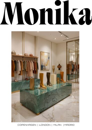 Danish international fashion house, Monika, inspires shoppers to discover their signature style through a total immersion in their playful retail universe. Agency-R worked with Monika to design the retail space interiors at four locations in Madrid, Copenhagen, London and Milan, featuring faux-marble decor, locally-sourced objects and custom scents.